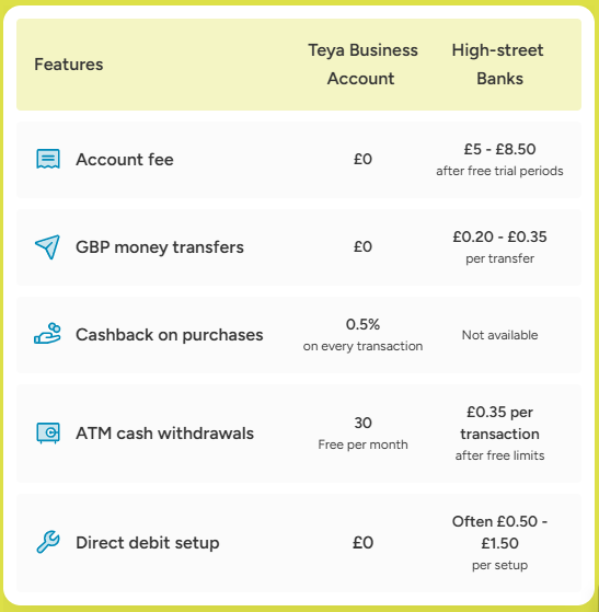Many traditional banks often hide fees that add up quickly. Teya Business Account offers low to no fees and full transparency, making it easier to manage your business finances.